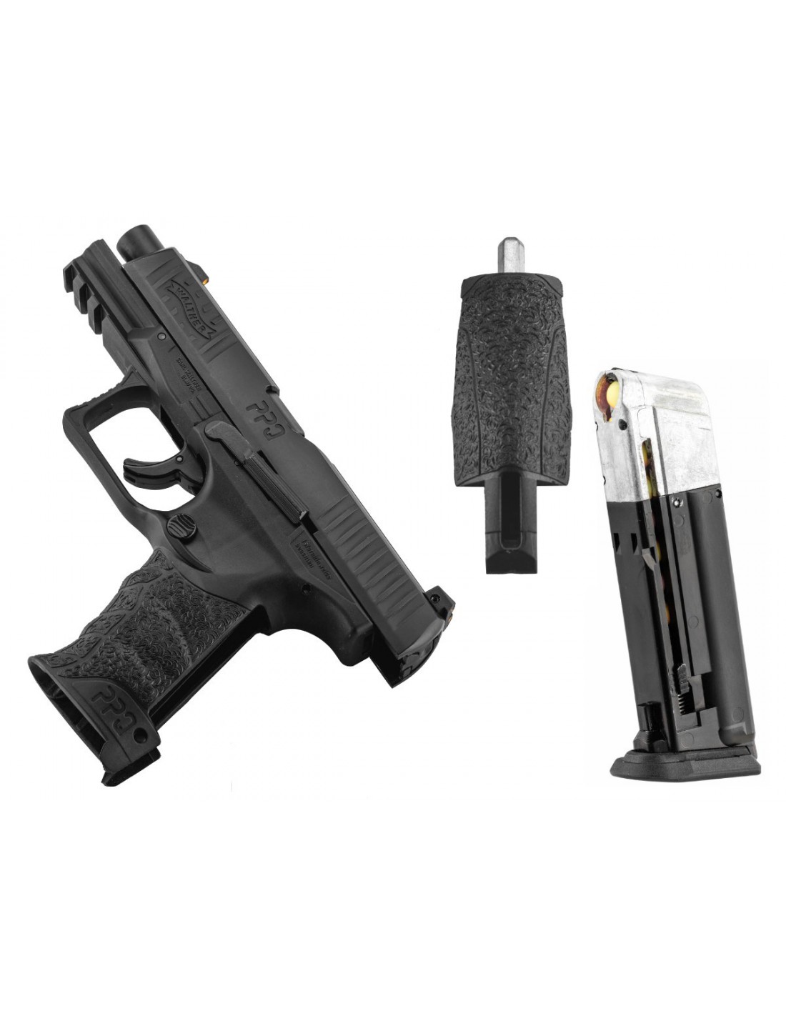 Le pistolet CO2 Walther PPQ M2 T4E noir en calibre 43 est une arme de défense particulièrement efficace due à son chargeur d'une capacité de 8 coups permettant de tirer jusqu'à trois types de munitions différentes (balle de craie marquante, balle caoutchouc et balle poivre).