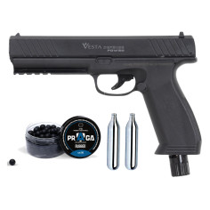 Le chargeur rotatif, facile à charger, peut contenir jusqu'à six munitions de calibre .50. La puissance est fournie par une cartouche de CO2 située dans la poignée. Ainsi, le Home Defense Revolver 50 est prêt à être utilisé à tout moment grâce à un système de percussion de la cartouche CO2 au dernier moment. Le design tout en métal, la forme large et la taille remarquable sont destinés à effrayer tout agresseur. Les surfaces texturées de la crosse vous assurent une prise en main sûre même dans les situations de stress, et la sécurité de la détente prévient les tirs accidentels si vous laissez tomber le revolver.