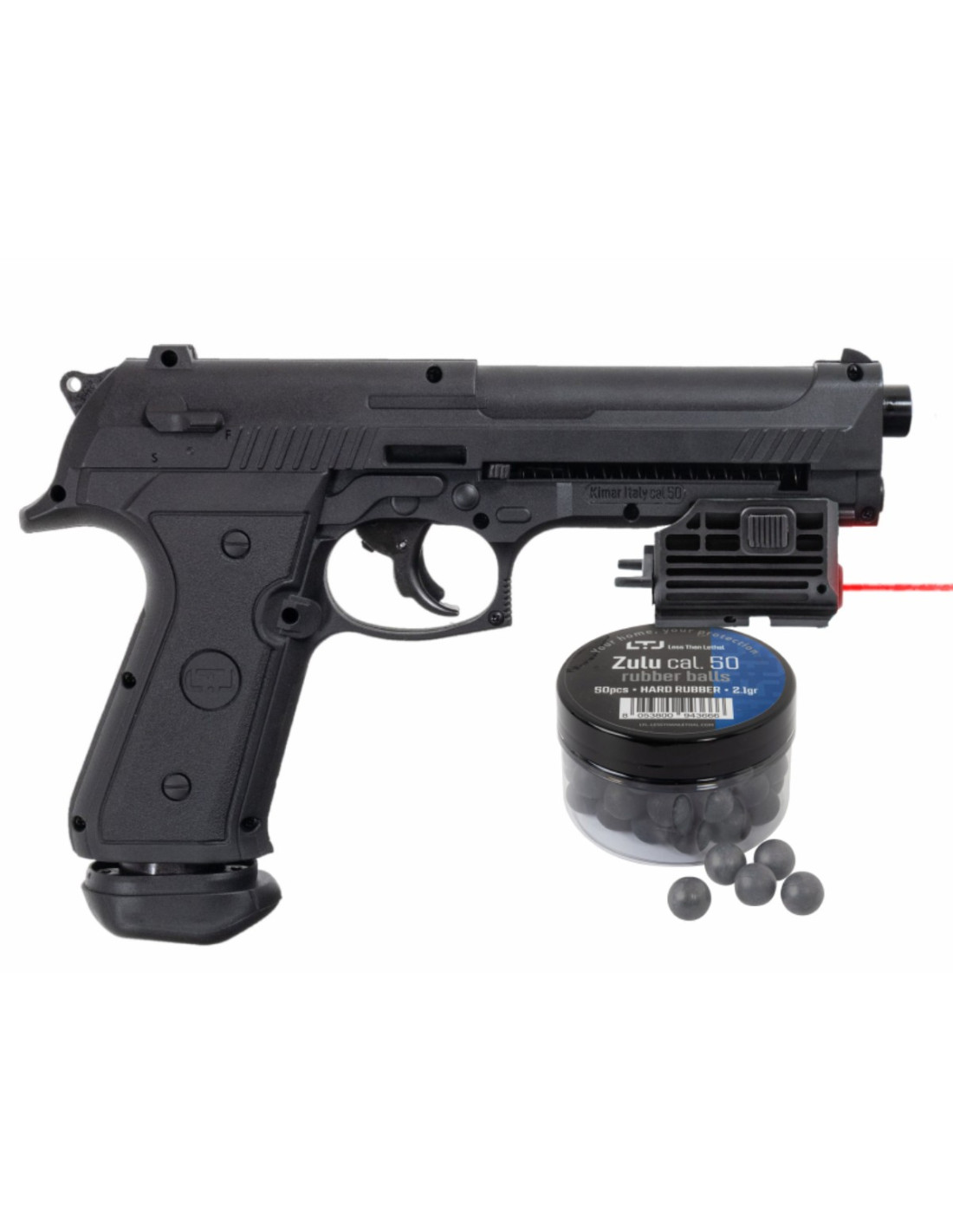 Pistolet Defense LTL Alfa 1.50 avec Laser Balles Caoutchouc Cal 50 semi automatique 18 Joules Livré avec 50 billes Caoutchouc 2,1 gr - LTLPK02