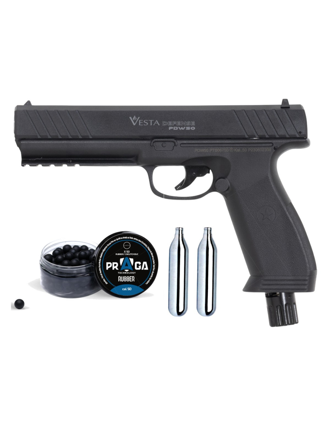 Pistolet Vesta Defense PDW50 Balles Caoutchouc Cal 50 semi automatique 14 Joules avec Mallette + 50 Balles + 2 Capsules CO2 - VES001
