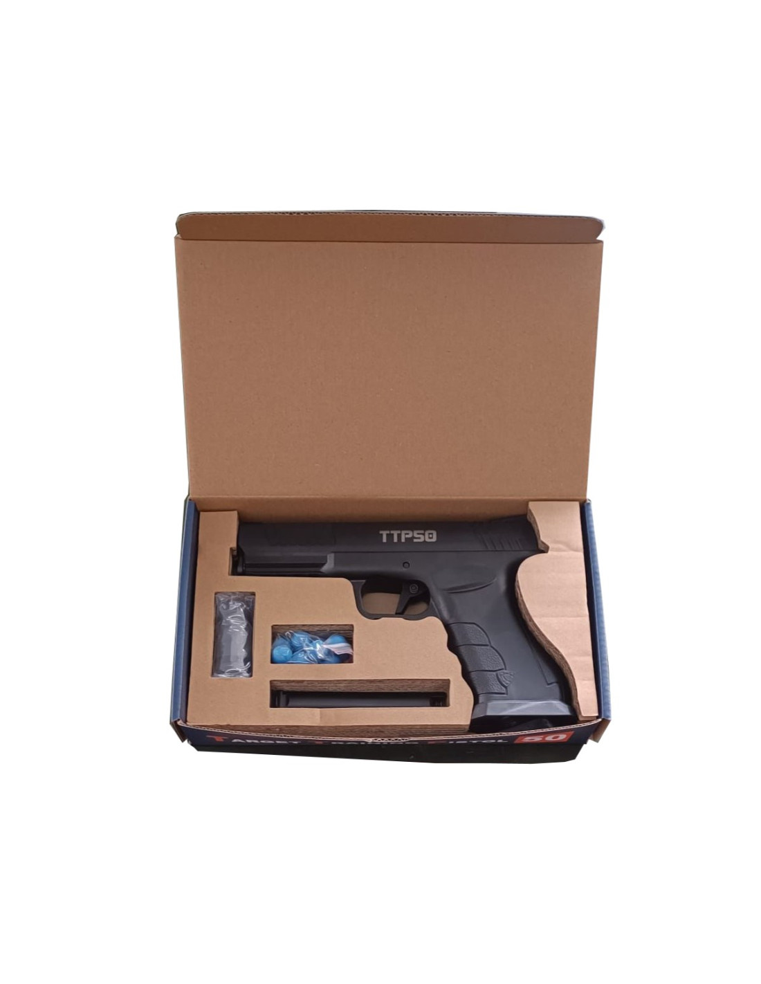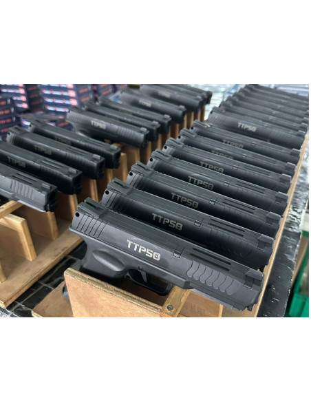 Pistolet de defense Target Training Pistol TTP50 apellé aussi GS50 en version 18 joules avec chargeur amovible sous le canon !