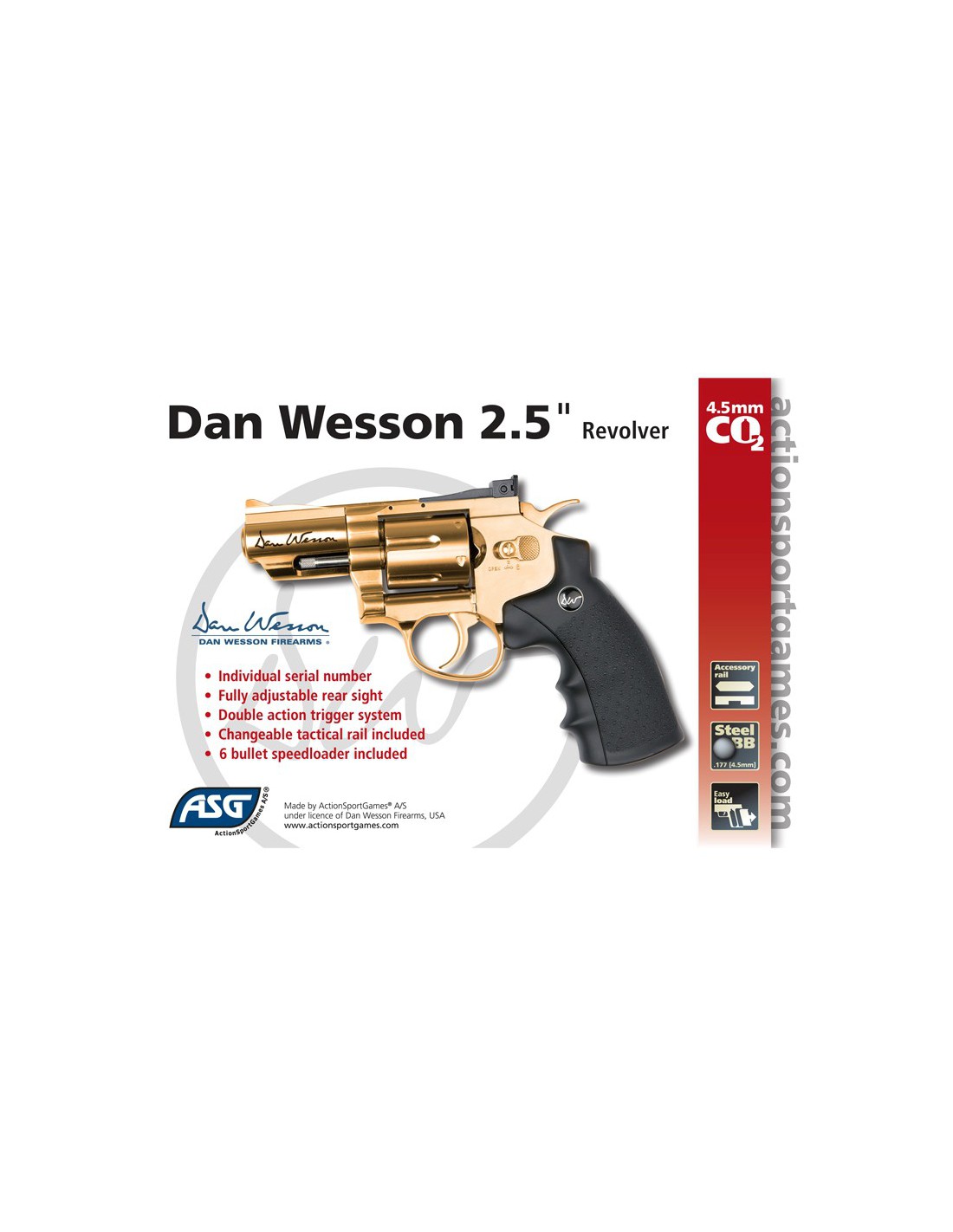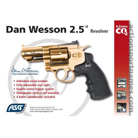 Ce revolver 2.5 "Or sous licence Dan Wesson offre beaucoup de plaisir avec un tir réaliste dans un format pratique.