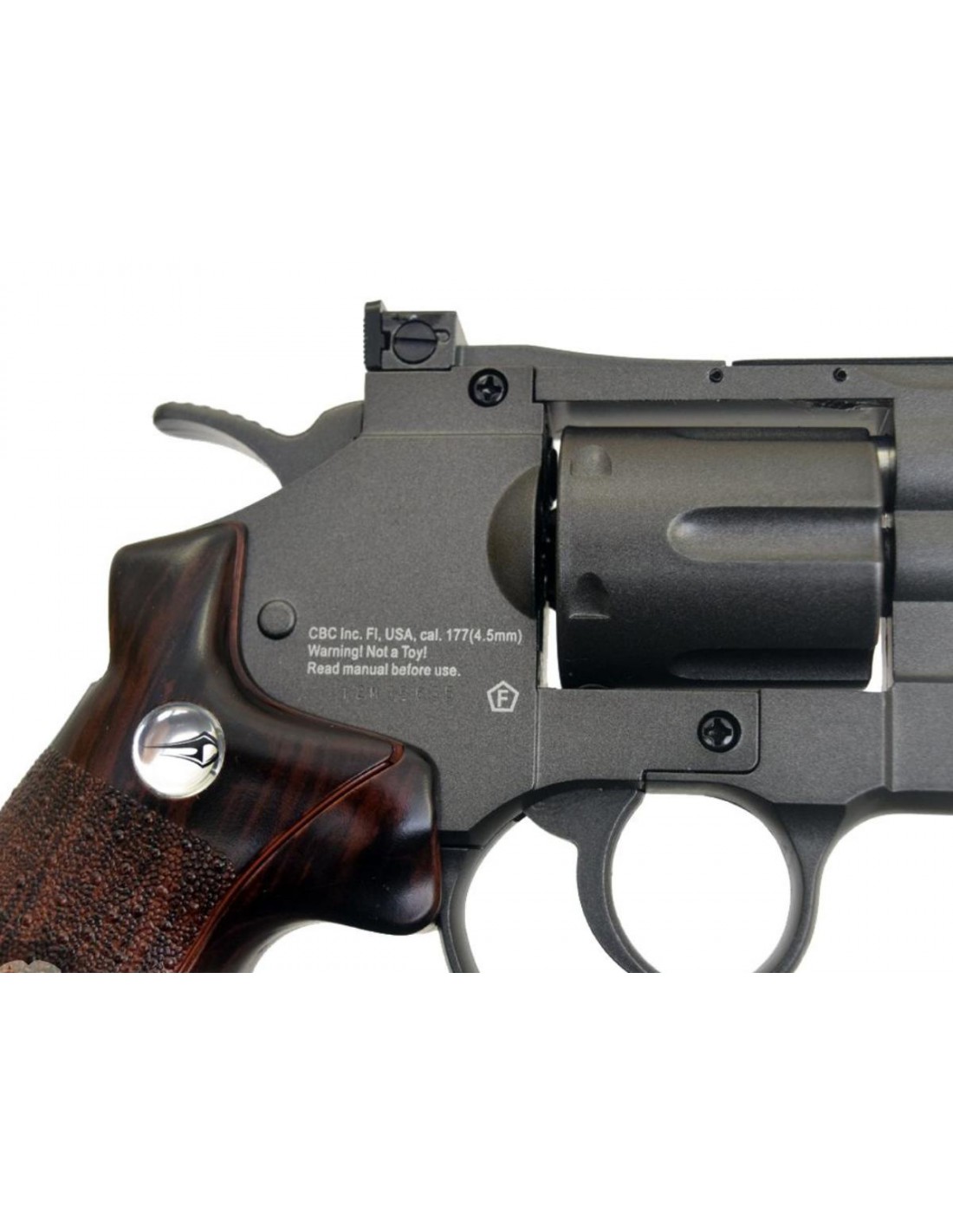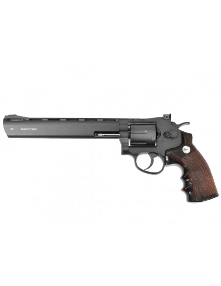 Tres belle replique de revolver couleur noir en 8'' avec poignée tactique imitation bois.