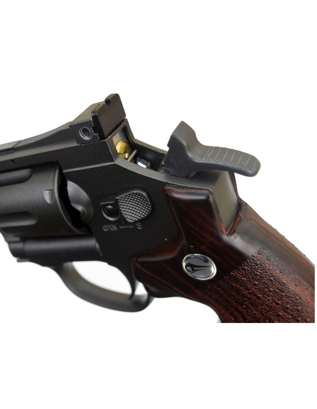 Une attention particuliere a ete apportée dans la realisation du barillet ainsi que sur le bouton poussoir permettant de basculer celui ci pour se rapprocher completement de l'arme réelle.