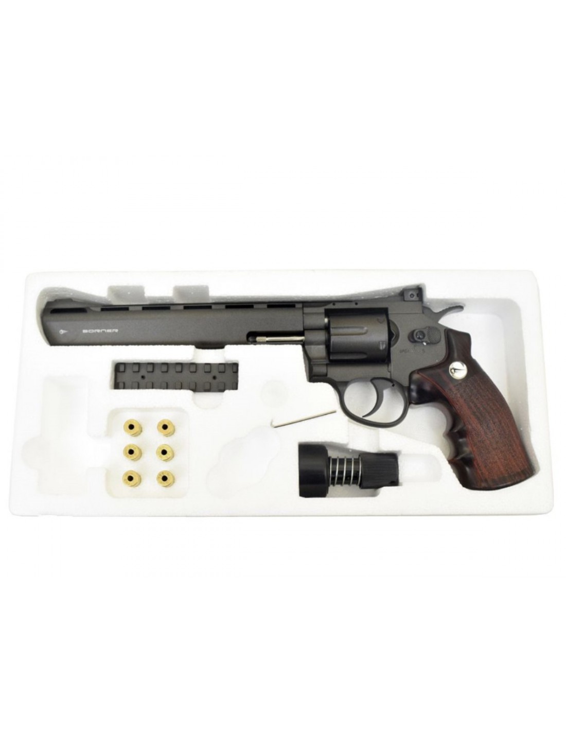 Revolver Borner 8'' Super Sport 703 CO2 4,5mm 3,5 J Livré avec Douilles, Rail et Speedloader - ACP721