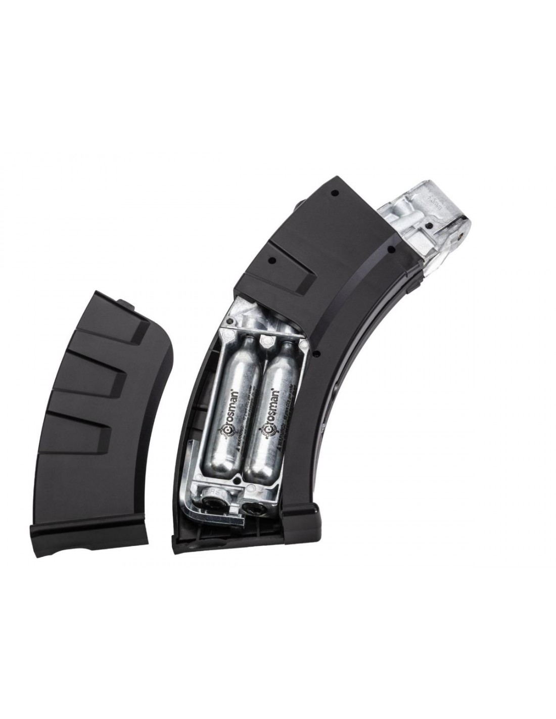 Alimenté par deux cartouches de CO₂ de 12 grammes logées dans le chargeur de 28 billes, le sélecteur à double action vous permet de choisir entre un tir semi-automatique et entièrement automatique.