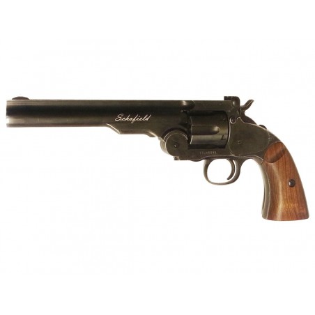 le Schofield Airgun alimenté au CO2 est une réplique ultra-réaliste du fameux revolver utilisé par de nombreux grands tireurs du Far West.