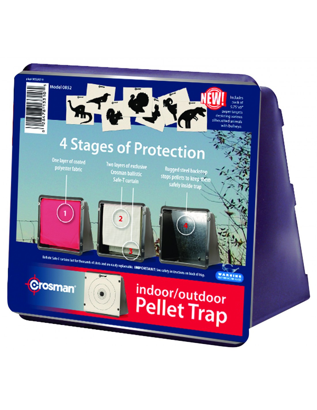 La cible-piège Crossman arrête les projectiles. Nos rideaux de triple sécurité exclusifs sont soutenus avec de l’acier épais galvanisé. Les cibles en papier incluent celles imitant diverses silhouettes d’animaux. La cible-piège est recommandée pour une utilisation avec des armes à air comprimé qui ne dépassent pas 750 pi/s pour les calibres de 5,5 mm, 650 pi/s pour les calibres de 5,0 mm et 800 pi/s pour les calibres de 4,5 mm. Son utilisation n’est pas recommandée avec les armes à air comprimé de calibre de 6,0 mm ou avec des projectiles à tête métallique.