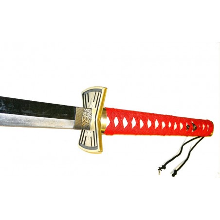 Sabre japonais blade tresse rouge 104 cm avec support - 10864
