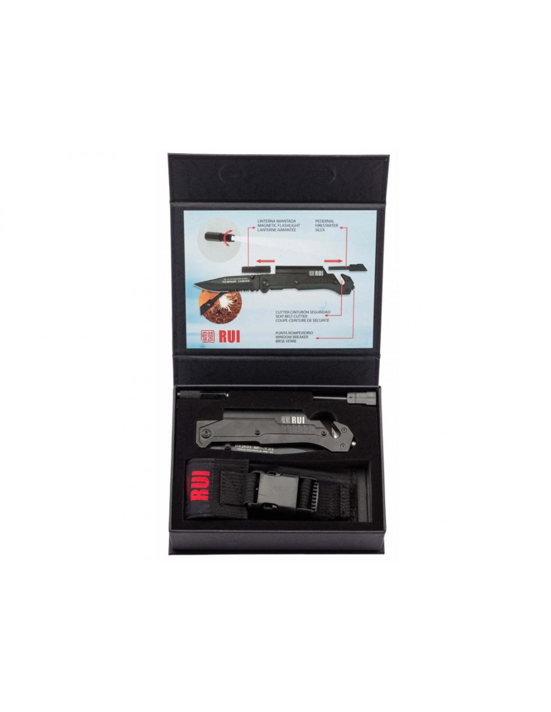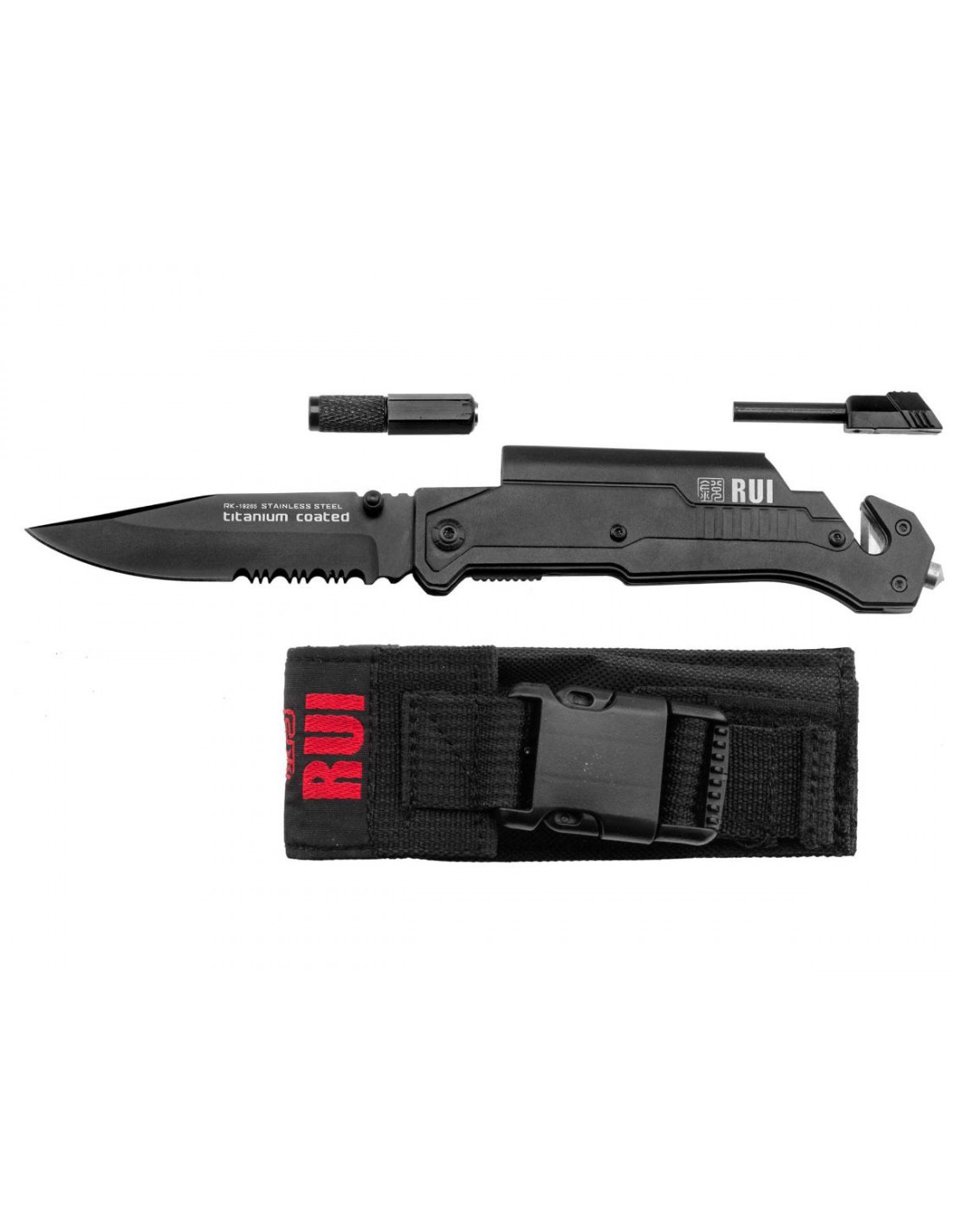Couteau Tactique K25 Pliant Titanium Coated Simple Tranchant, Lampe, Allume feu, Coupe Ceinture, Brise Vitre - LC99810