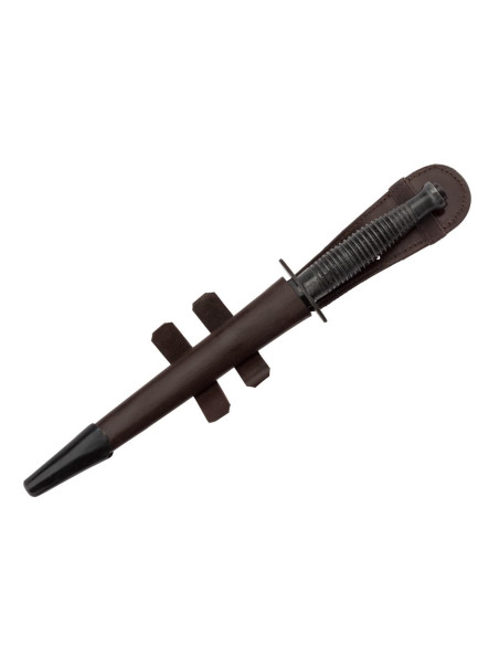 Belle reproduction de la Dague Commando des SAS avec son étui en cuir à extrémité acier.
