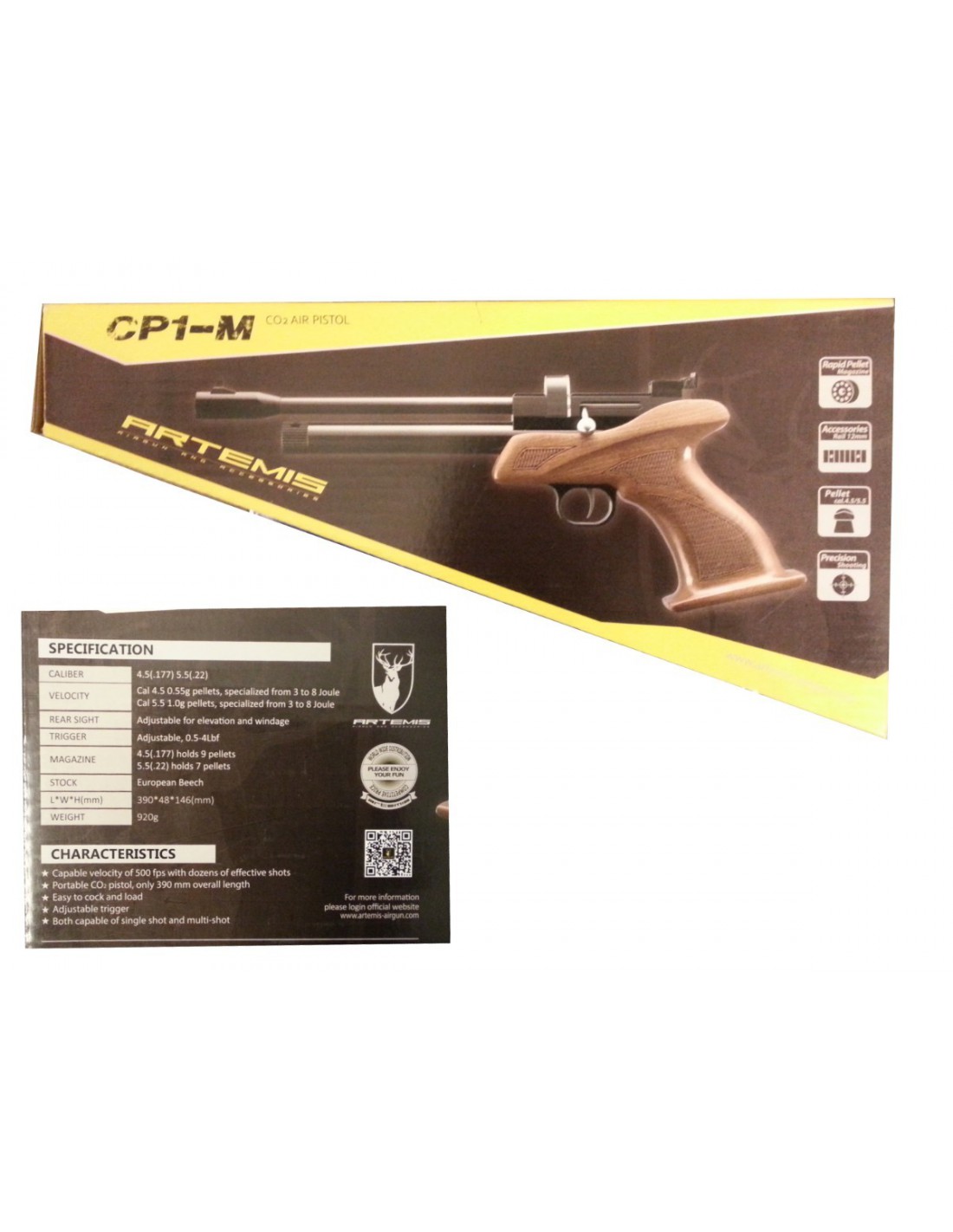 Pistolet Tir Sportif CP1 Multi Coups Artemis full metal et crosse bois veritable 4,5 mm Plomb CO2 - 690007