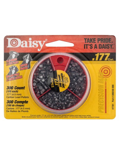 La boîte est compartimentée pour 3 types de diabolos plomb calibre 4.5 mm (.177'').